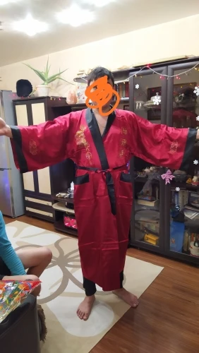 Более красный цвет, чем на фото, но в целом красивый халат. Очень хорошая деталь, работа и удобство!