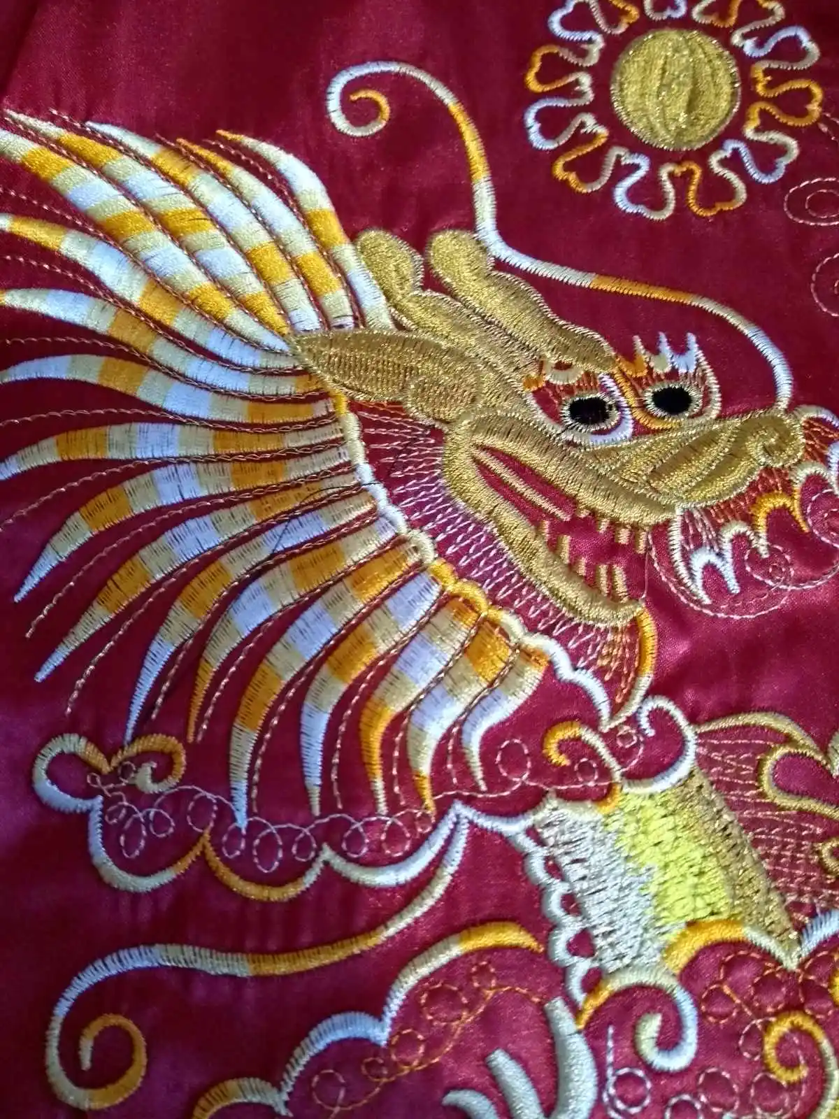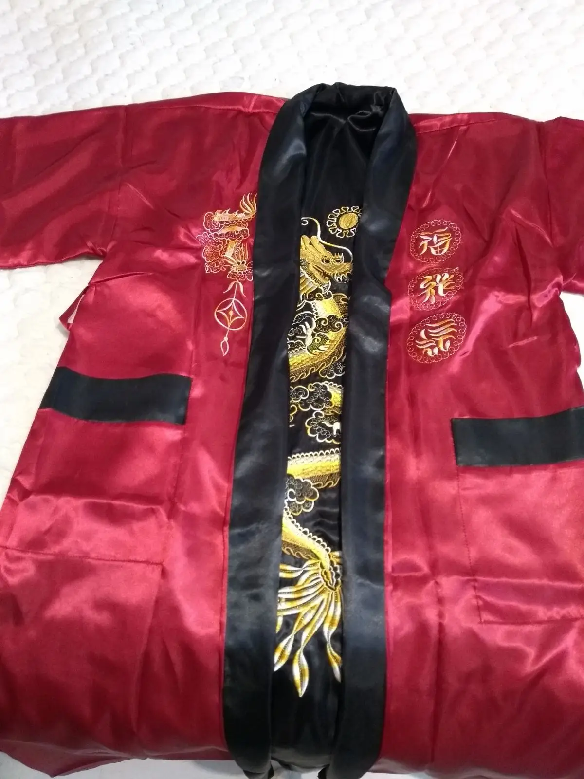 Двустороннее китайское шелковое двустороннее кимоно цвета Бургунди с вышивкой, один размер, S3003