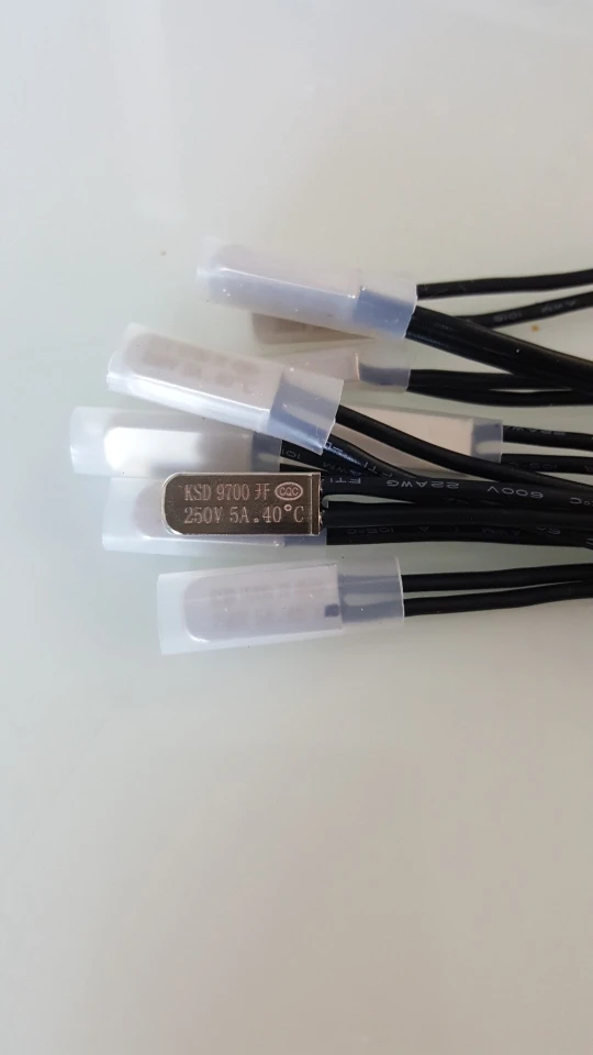 термореле с нормально разомкнутыми контактами, срабатывают после 40 градусов и восстанавливаются около 35 С. шло до урала 2 месяца.