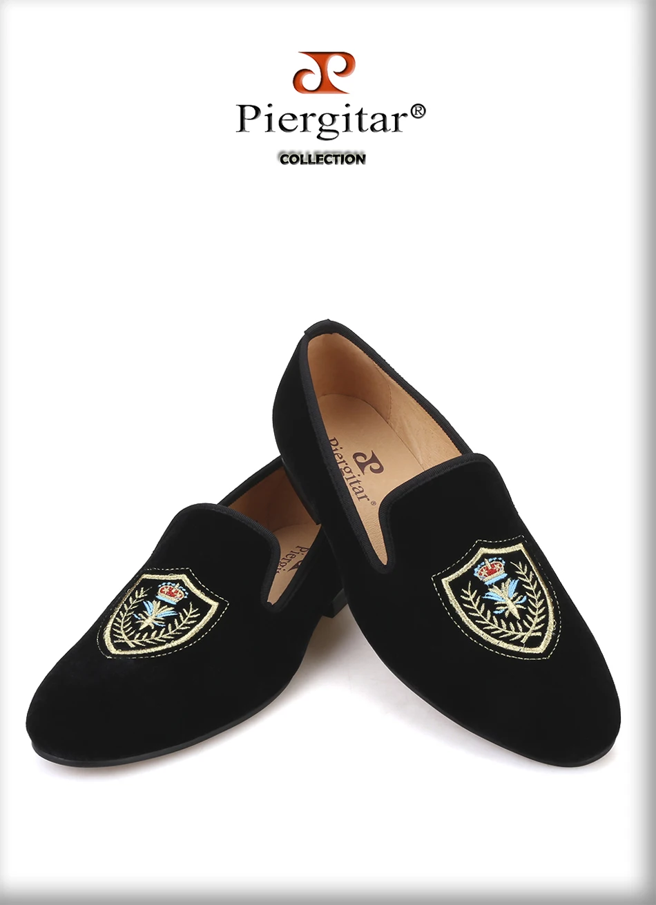 Мужские бархатные туфли Piergitar ручной работы с вышивкой льва, му...