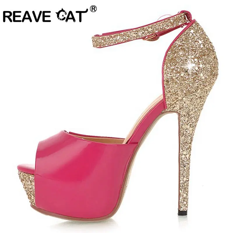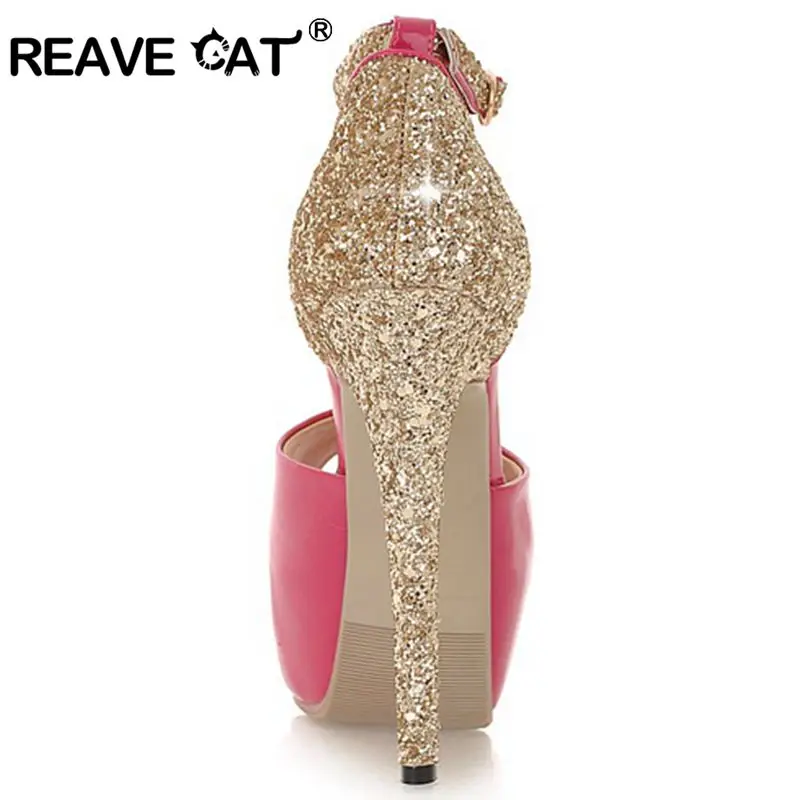Женские свадебные туфли-лодочки REAVE CAT, туфли-лодочки на высоком каблуке 13 см с открытым носком и пряжкой на платформе, размер 34-43
