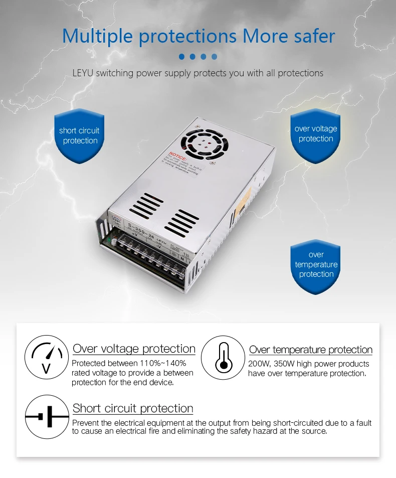 90 ~ 132VAC/180 ~ 264VAC выбран переключателем 47 ~ 63Hz; 254 ~ 370VDC