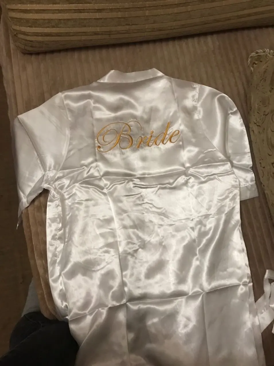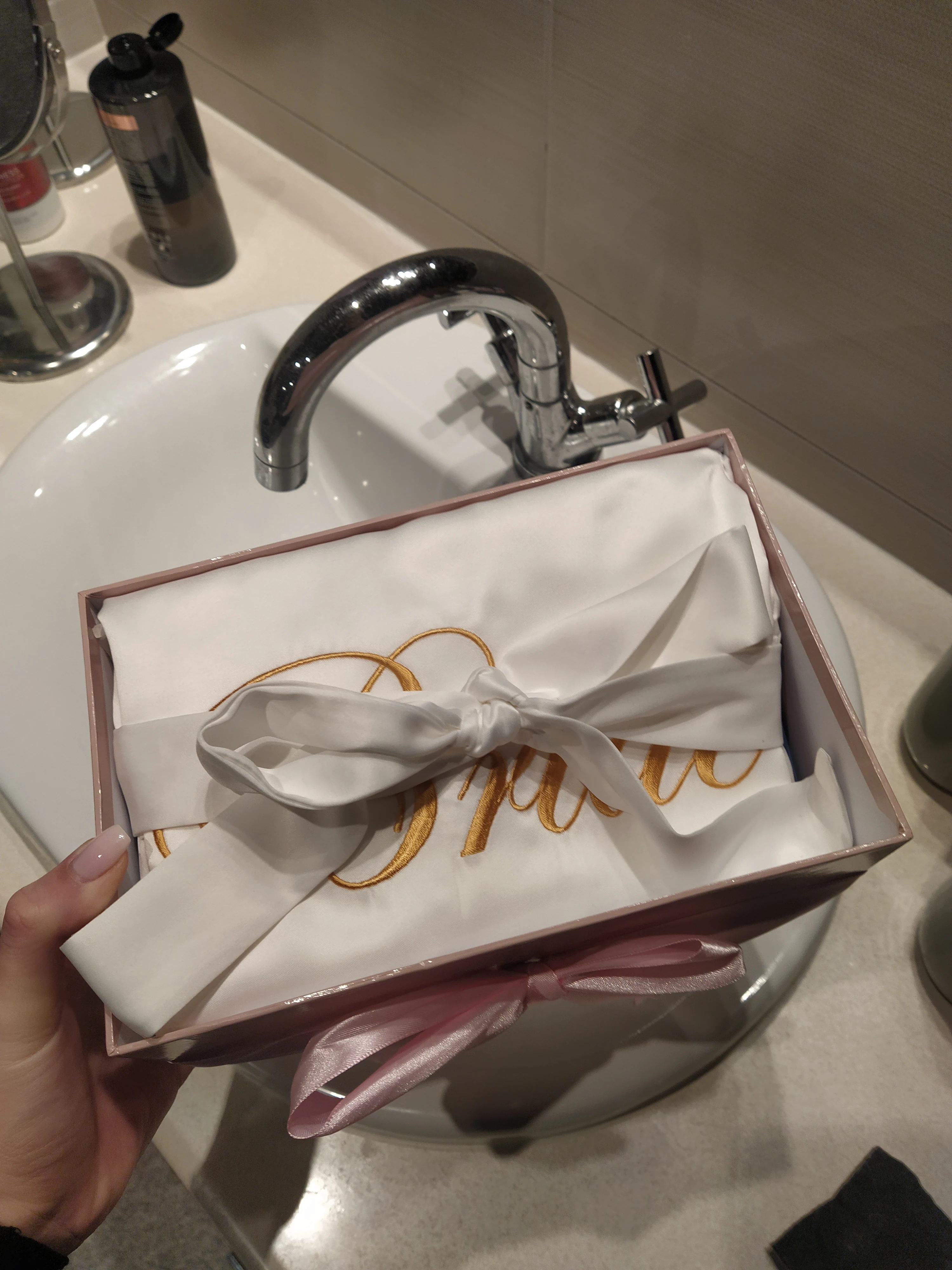 Этот халат просто обалденного качества! Мягкий, шелковый. Единственное - немного просвечивает. А так очень и очень красивый. Надпись вышита качественно