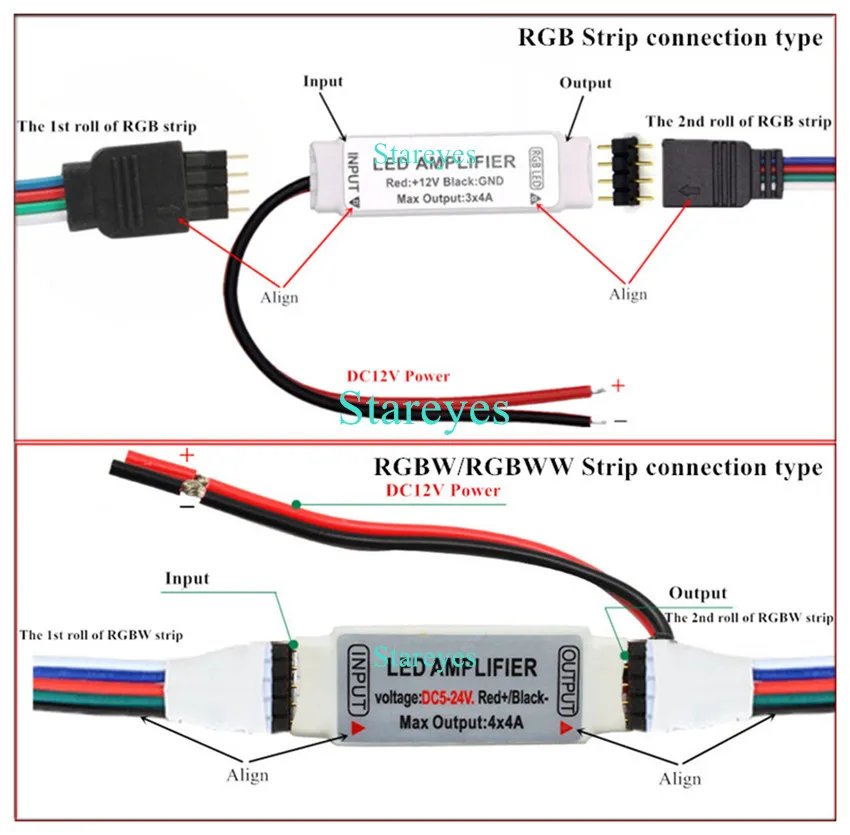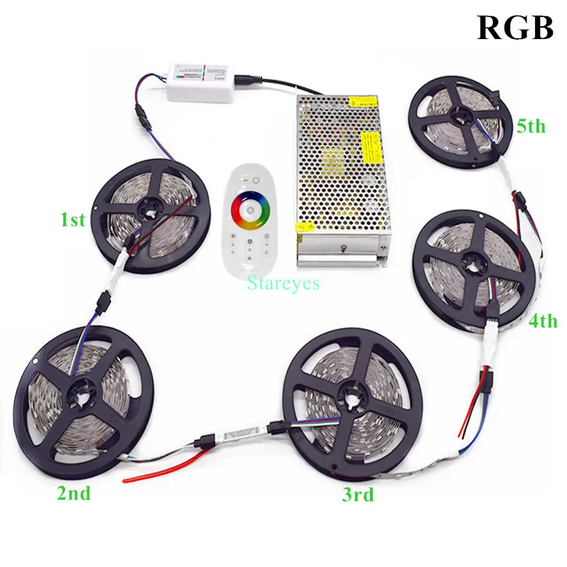 Лента светодиодная Stareyes RGB RGBW, 5/10/15/20/25/30 м, IP20/IP65 SMD5050 300 + пульт дистанционного управления 2,4G + блок питания 12 В (+ усилитель)