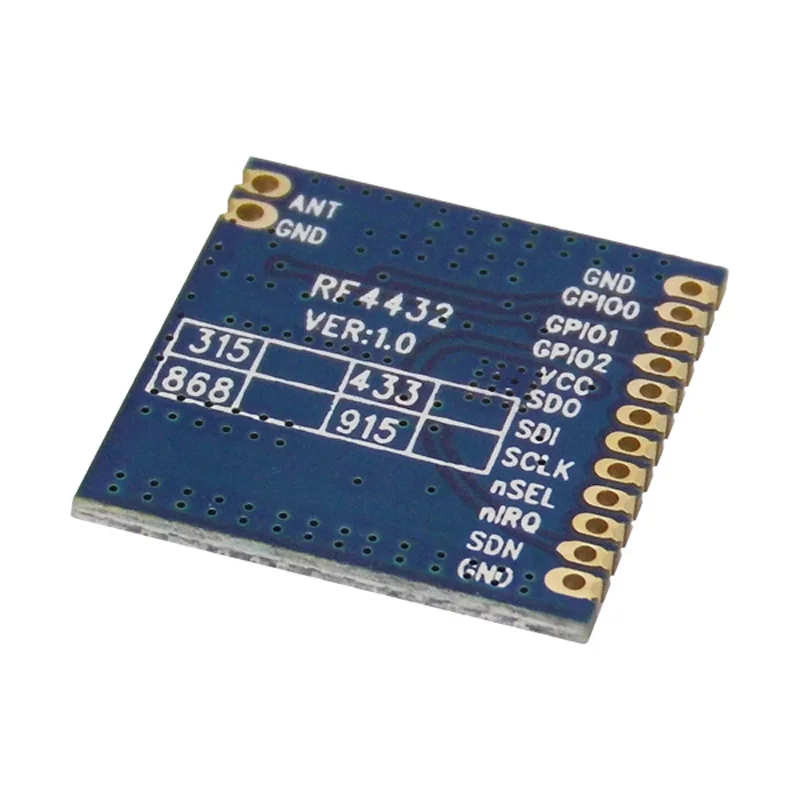 RF4432Используется чип Silicon Lab Si4432 RF, который является высокоинтегрированным беспроводным приемопередатчиком ISM-диапазона. Особенности высокой чувствительности (-121 дБм), + 20 дБм выходной мощности, кристалл 10PPM, А хорошая схема подбора радиочастотных сигналов позволяет модулю хорошо работать в жаркой/холодной среде с надежной связью и большим расстоянием.