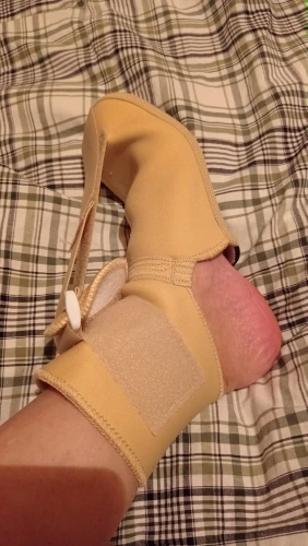 Вещь бесполезная и неудобная. Особенно стяжная лента сделана по дурацки, слишком длинная, надо её перешивать. Больше чем на 90 градусов не стягивает стопу, плохо продумана конструкция, короче, этих денег совсем не стоит. Ночью проснёшься и уже только снимать, иначе потеет нога, грубые длинные застёжки тоже мешают.