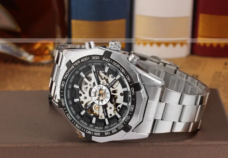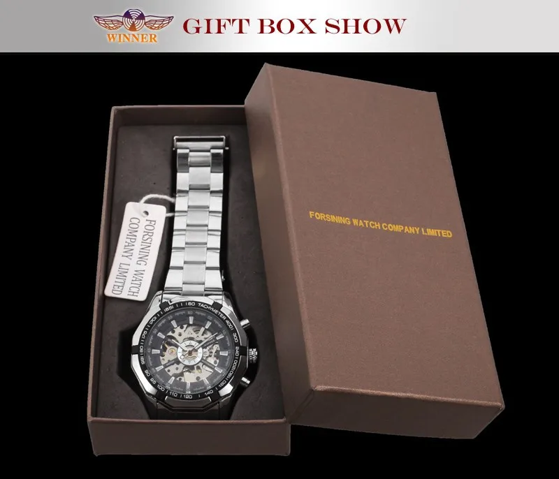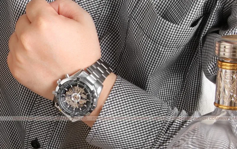 Часы WINNER Мужские Наручные с автоподзаводом, серебристые, с браслетом из нержавеющей стали