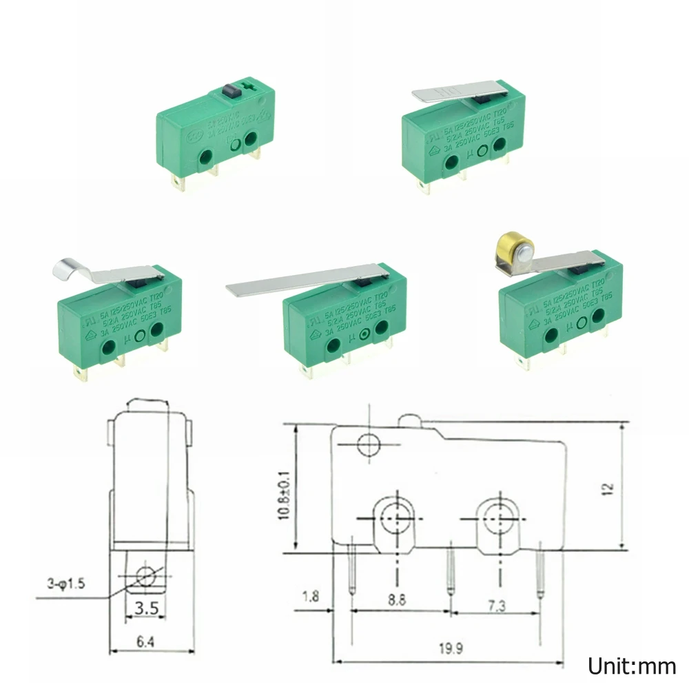 Микро-концевые выключатели, 3 контакта NO + NC SPDT 3A5A 250VAC, мини-микро-переключатель, длинный дуговой роликовый рычаг, Микропереключатели, 17 мм, 29 мм, 1 шт.