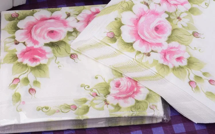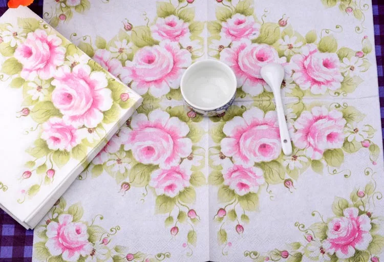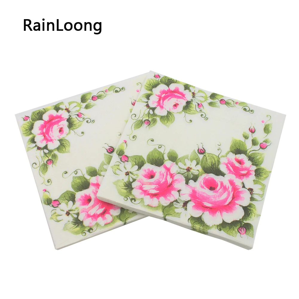 RainLoong печатных Особенности Розовая роза цветок Бумага салфетка для торжеств и вечерние поставки декоративная ткань декупаж 1 упаковка (20 шт.упак.)