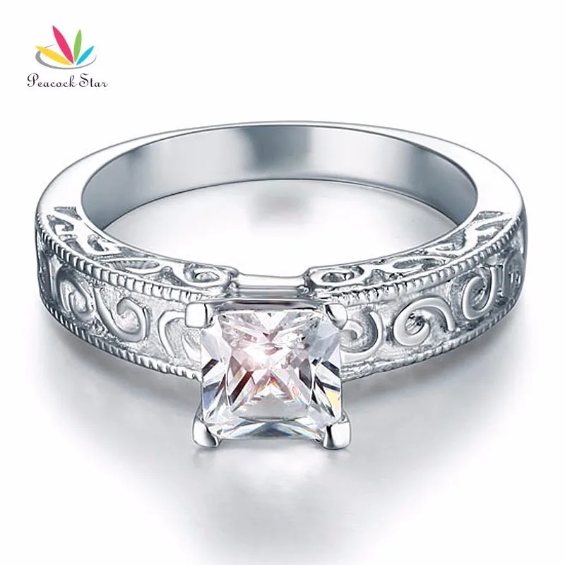 Павлин звезда Твердые 925 пробы Серебряное обручальное кольцо обещание Обручение кольцо Винтаж Стиль ювелирные изделия CFR8076