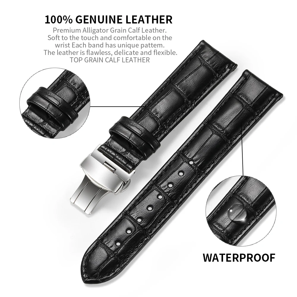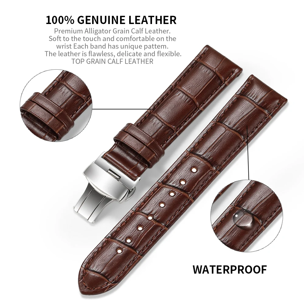 Ремешок для часов 12, 13, 14, 16, 17, 18, 19, 20, 21, 22, 24 мм, из натуральной кожи