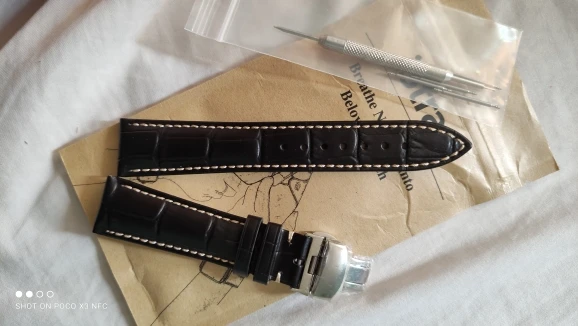 Потрясающий ремешок, настоящая кожа + отличный механизм типа "бабочка". Заказываю уже не первый раз у этого продавца (первый ремешок до сих пор в отличном состоянии, хотя прошло уже 4 года). Всё как всегда на высочайшем уровне. В комплекте 4 штифта, инструмент для установки и сам ремешок. Продавец отправил прямо в день оформления заказа. Доставка просто феноменальная, до Москвы за 7 дней. Буду обязательно в дальнейшем рекомендовать данного продавца!