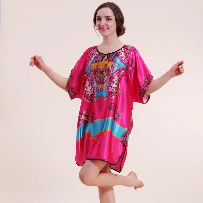 Женская пикантная шелковая ночная рубашка с коротким рукавом, размера плюс одежда для сна, Повседневная Ночная рубашка для отдыха, женская одежда для сна, летняя атласное шелковое
