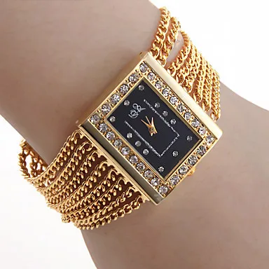 Женские часы из поликарбоната с золотистым ремешком и черным циферблатом, дизайнерские кварцевые часы-браслет с украшением из чешских страз, 2018