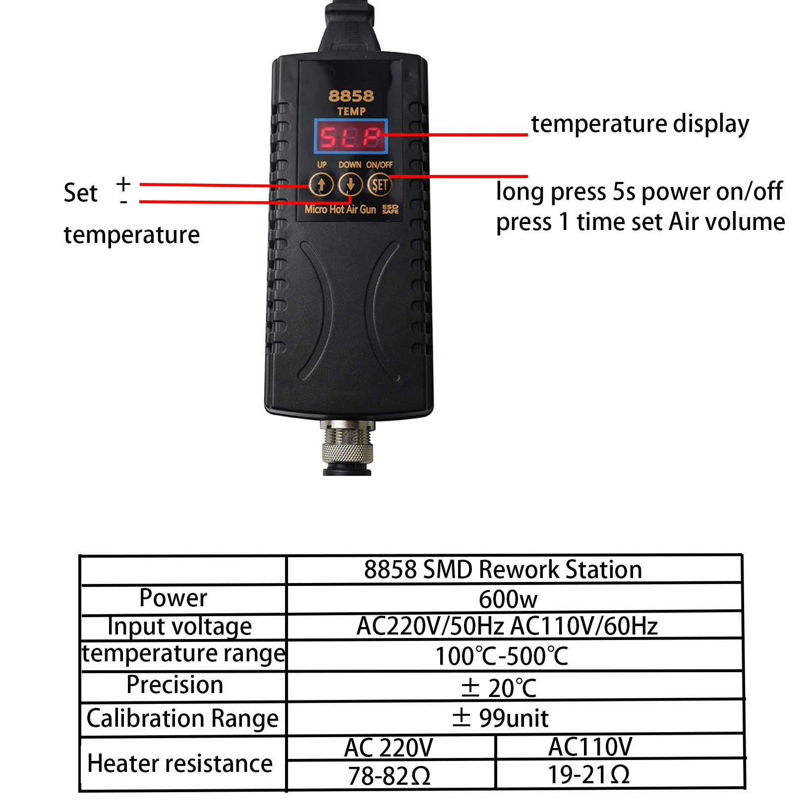 Высококачественная Портативная паяльная станция BGA со светодиодной подсветкой, воздуходувка горячего воздуха, тепловая пушка 8858