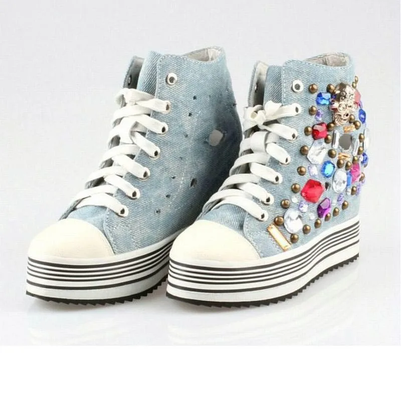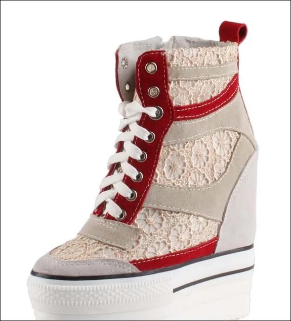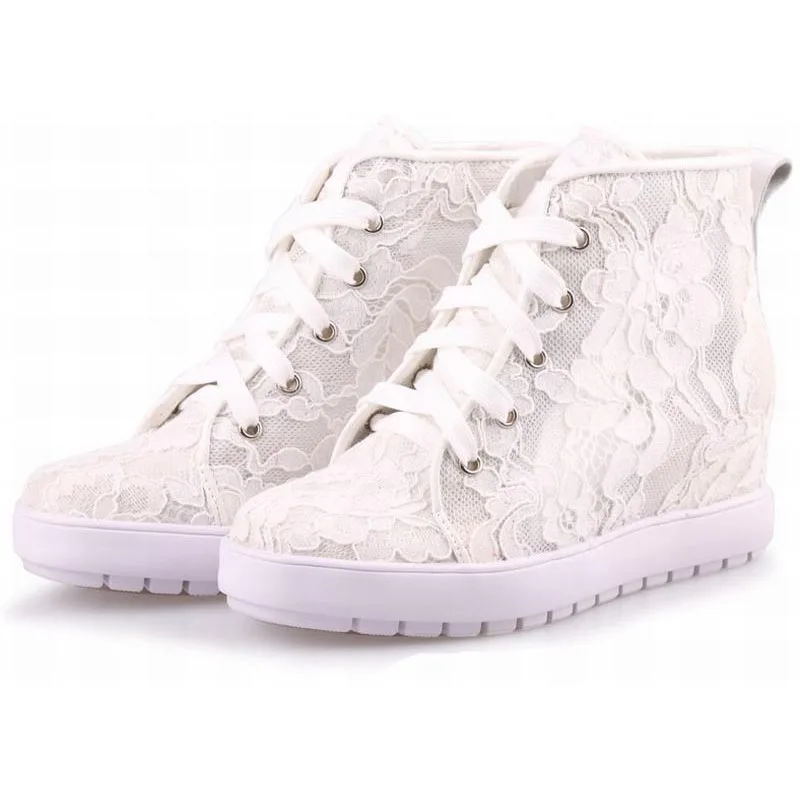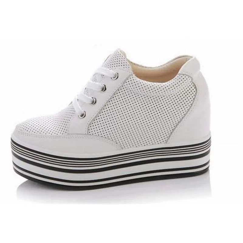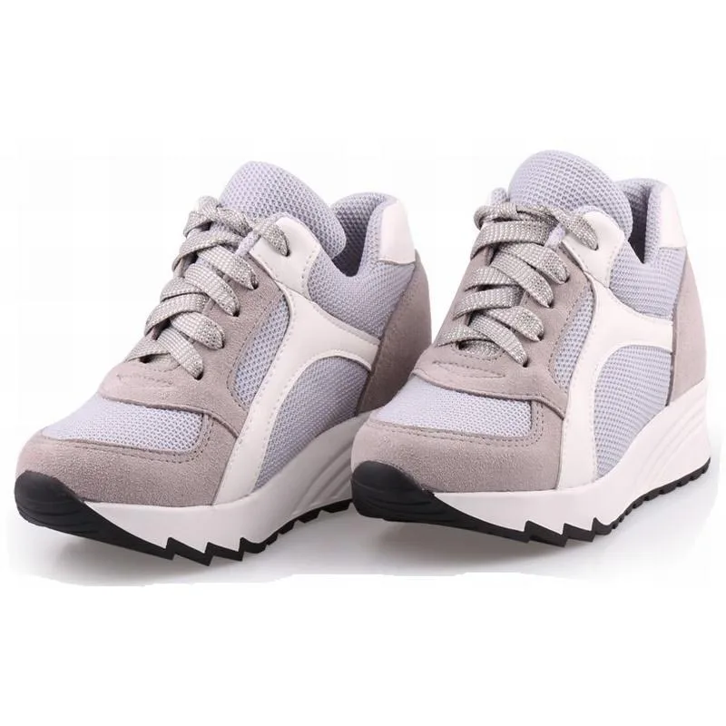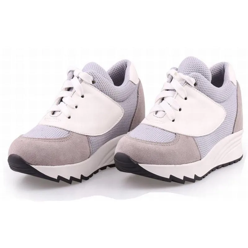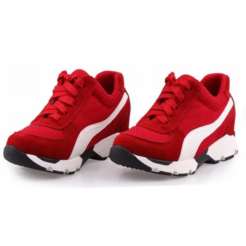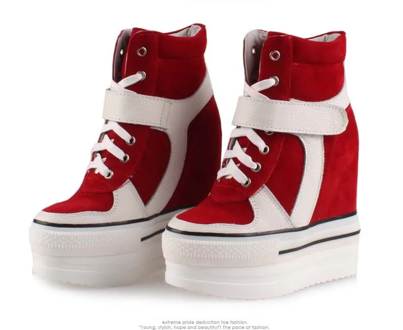 Женские ботинки со шнуровкой, Повседневная стеганая обувь на высокой платформе, увеличивающая рост, 2017