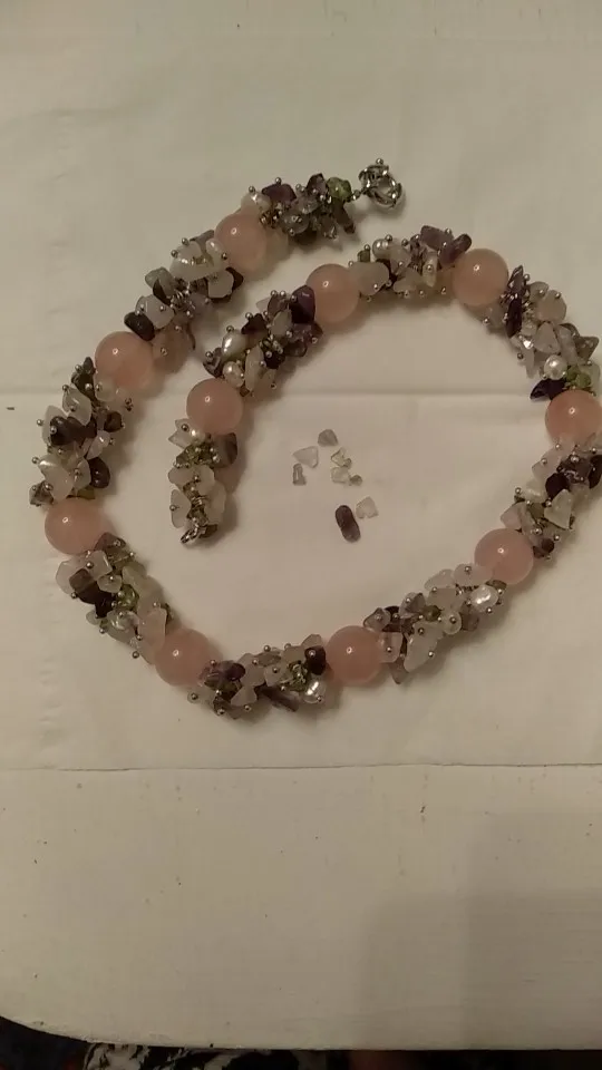 Не соответствует фото : в ожерелье должно быть 11 основных кварцевых бусин. Мне прислали ожерелье, в котором всего 10 таких бусин, какой-то укороченный вариант. Упаковано в 1 слой пупырчатой пленки, поэтому мелкие камешки ожерелья разбились. Крайнее неуважение к покупателю.