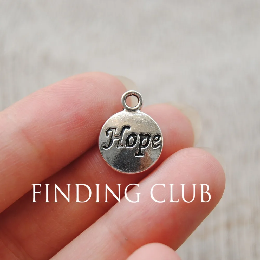 Круглые Подвески с надписью Hope, серебристого цвета, 50 шт., 12 мм, металлическая подвеска для браслета, ожерелья, Ювелирная фурнитура A715