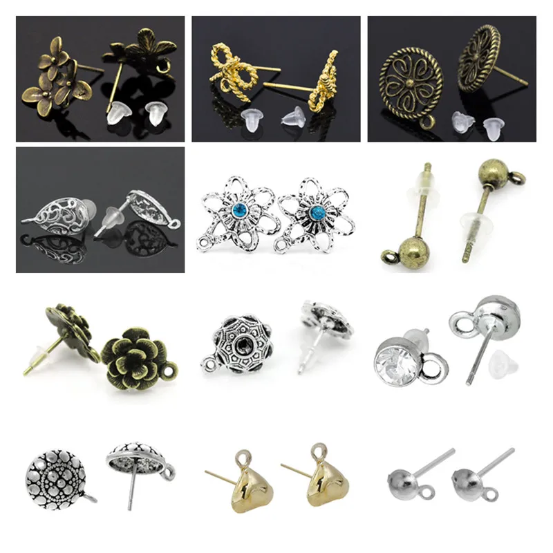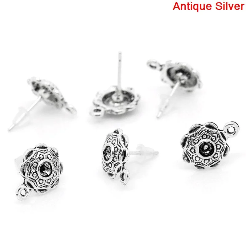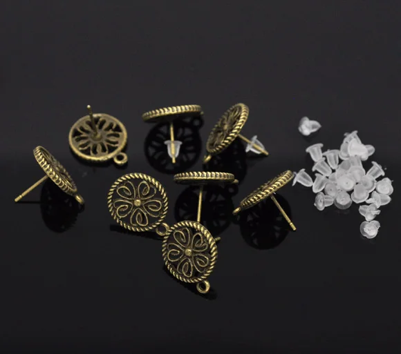 Серьги-гвоздики DoreenBeads, круглые резные серьги-гвоздики в форме капли с цветами, 10-400 шт.
