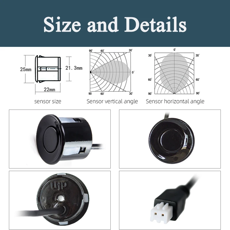 Датчик парковки Hippcron, 4 шт., 22 мм, черный, красный, синий, золотой, серый, серебристый, шампанское, Золотойбелый цвет, Автомобильный датчик заднего хода