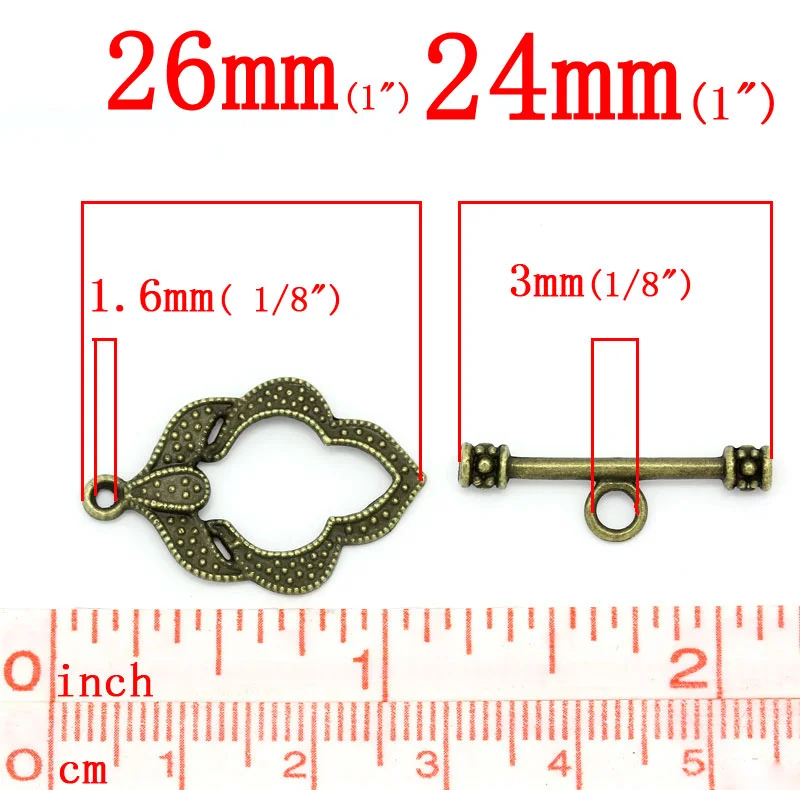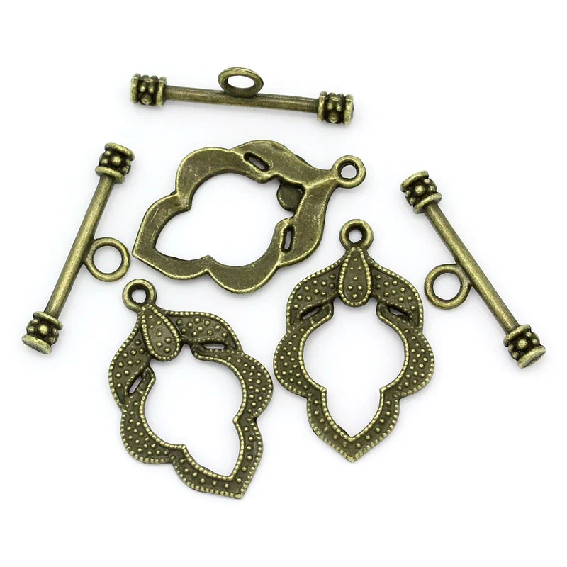 Переключатель застежки лист Античная бронза 26x17 мм 24x7 мм, 50 комплектов