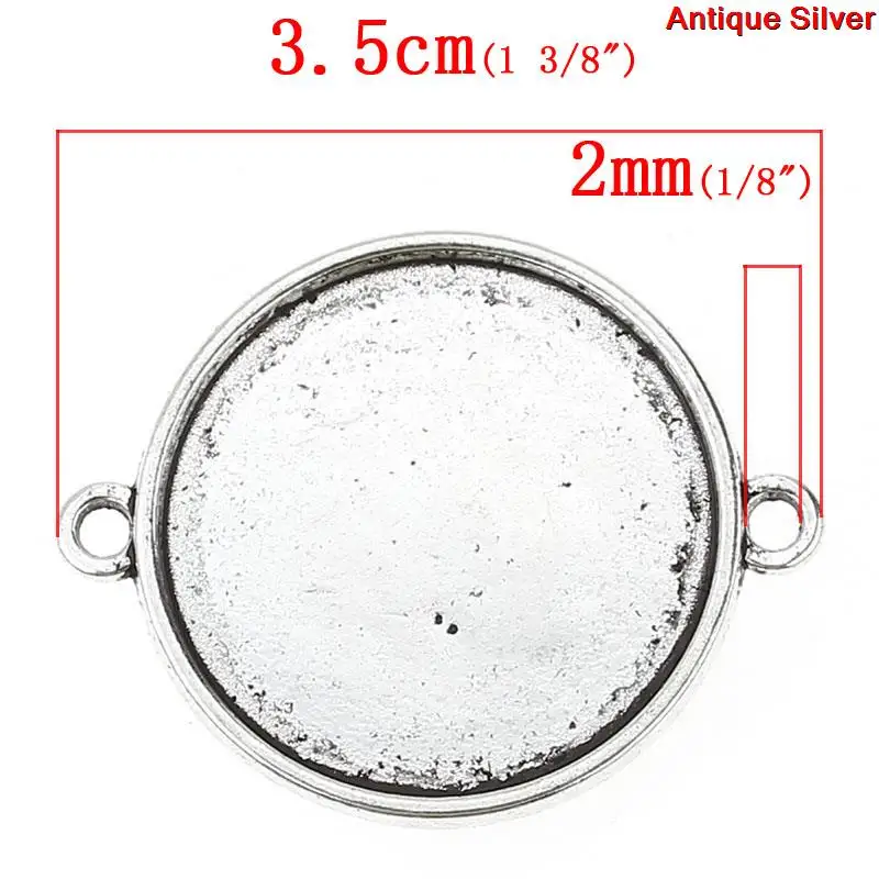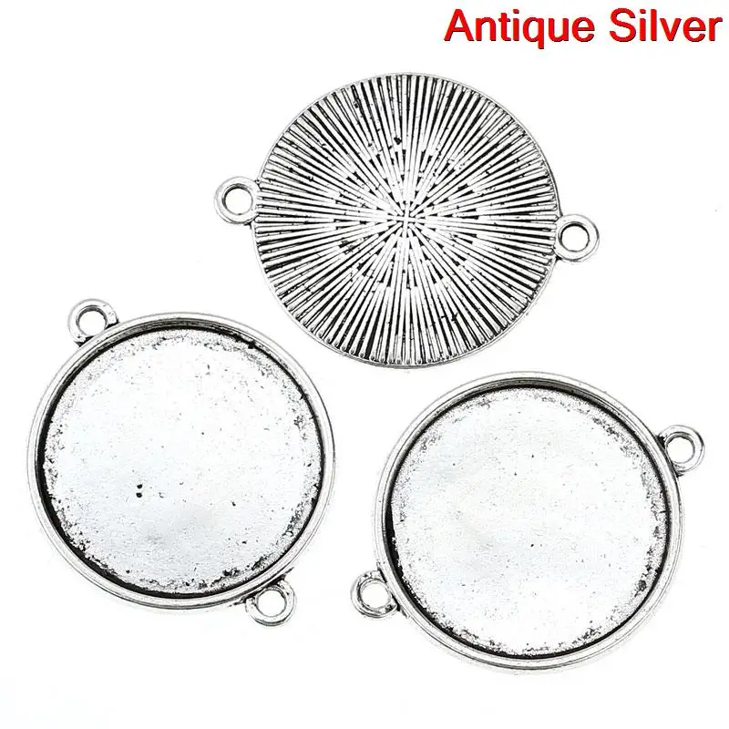 Соединительная фурнитура, круглая, античный, серебристый, в полоску, резной кабошон (подходит для диаметра 25 мм), 3,5 см x 2,8 см