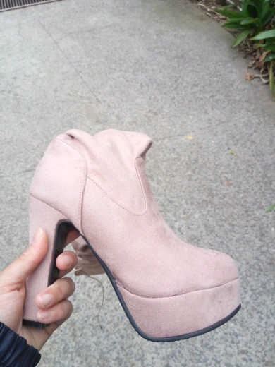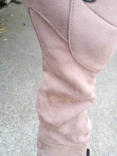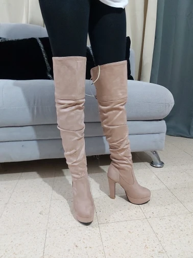 Очень мило, передний каблук немного поднят, они волосатые внутри (теплые). Верх, сверху колена, внутри ботинка, сделан из кожи, очень красивый, его можно использовать с той стороной, согнутой снаружи. Размер в соответствии с описанием, хотя нога немного узкая, я рекомендую брать еще пару размеров.