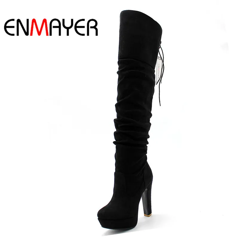ENMAYERмодные женские сапоги женские ботфорты из флока с бахромой пикантная зимняя обувь с круглым носком