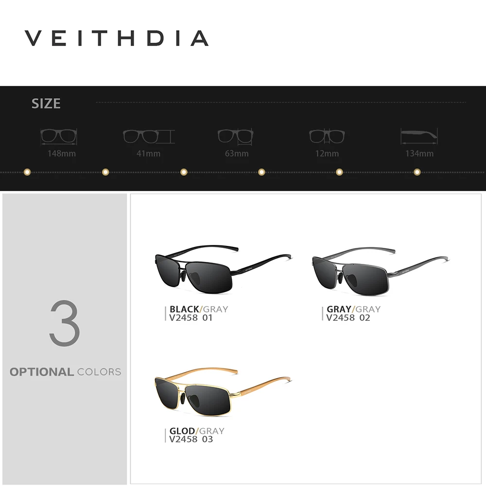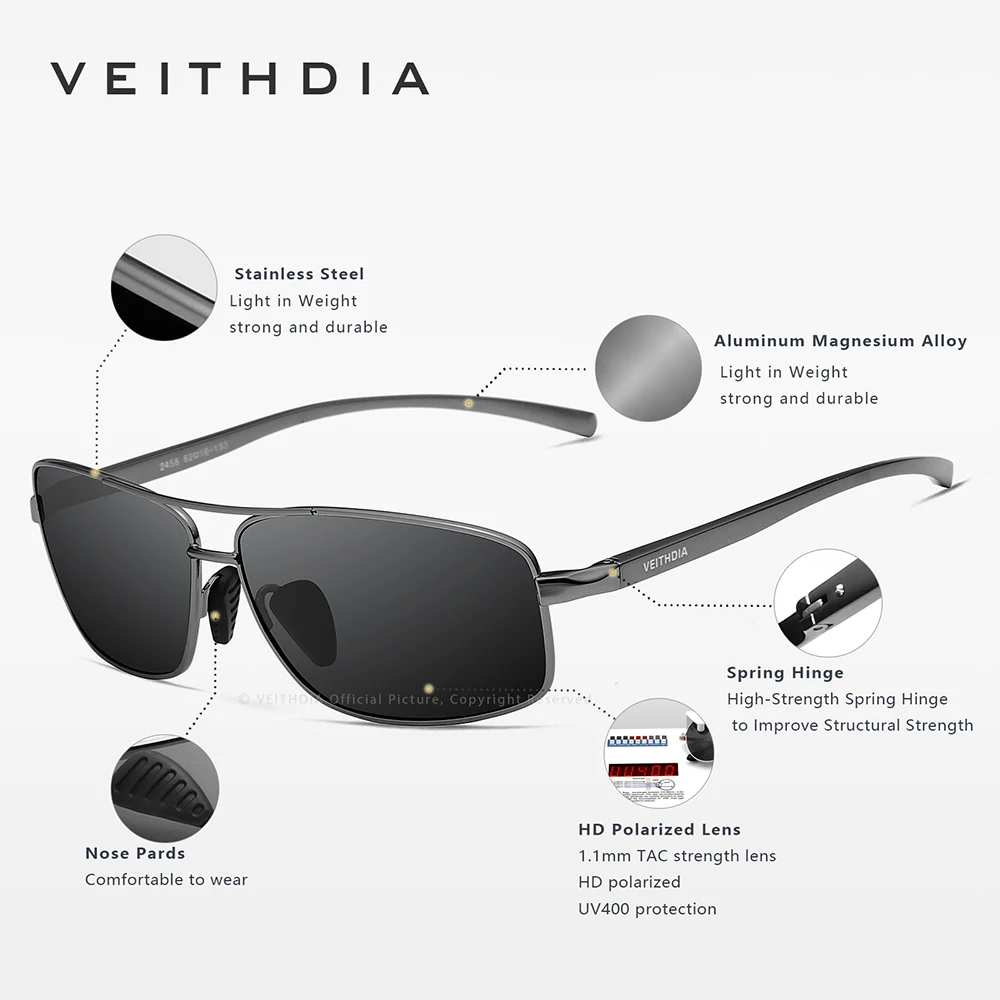 Бренд VEITHDIA, солнцезащитные очки, поляризационные, UV400 линзы, мужские, винтажные, алюминиевая оправа, солнцезащитные очки, очки, аксессуары для мужчин 2458