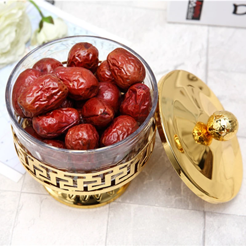 Высококачественные уникальные блестящие золотые металлические и акриловые банки для солисахарачаякофе, столовая посуда