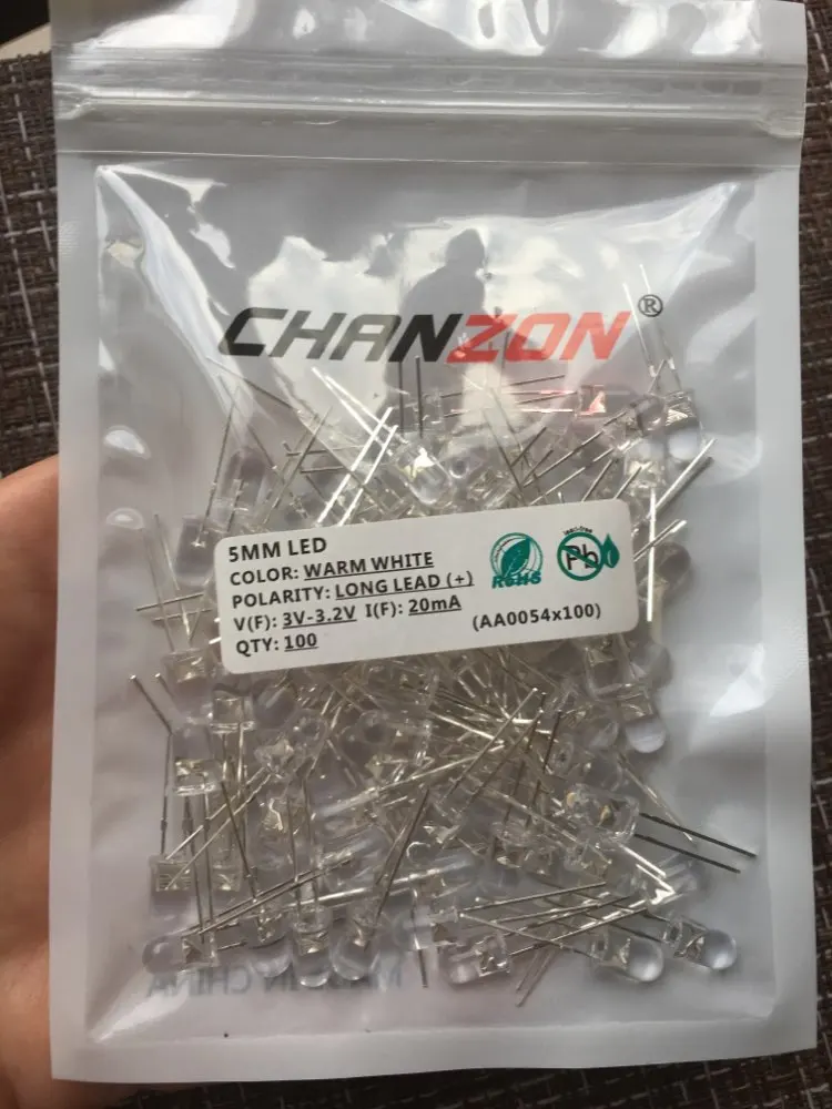 Доставка довольно длительная и заняла она 61 день. Это очень долго! Посылку прислали почтой Китая и трекинг отслеживался до получения посылки на почте. Покупку прислали в жёлтом бумажном почтовом пакете с пупырчатой плёнкой внутри, и она дошла без повреждений. Светодиоды находились в фирменных самозакрывающихся пакетиках. Всего 10 пакетиков по 10 светодиодов в каждом. Общее количество светодиодов 100 штук. Напряжения и цвета соответствуют заявленным. Диаметр светодиодов 5 мм. Спасибо продавцу за качественный товар по хорошей цене.