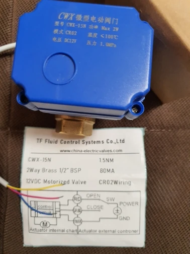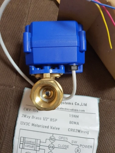 Латунный клапан электродвигателя 12 дюйма, моторизованный клапан 12 В постоянного тока с 3 Проводами (CR02), электрический клапан DN15 для контроля воды