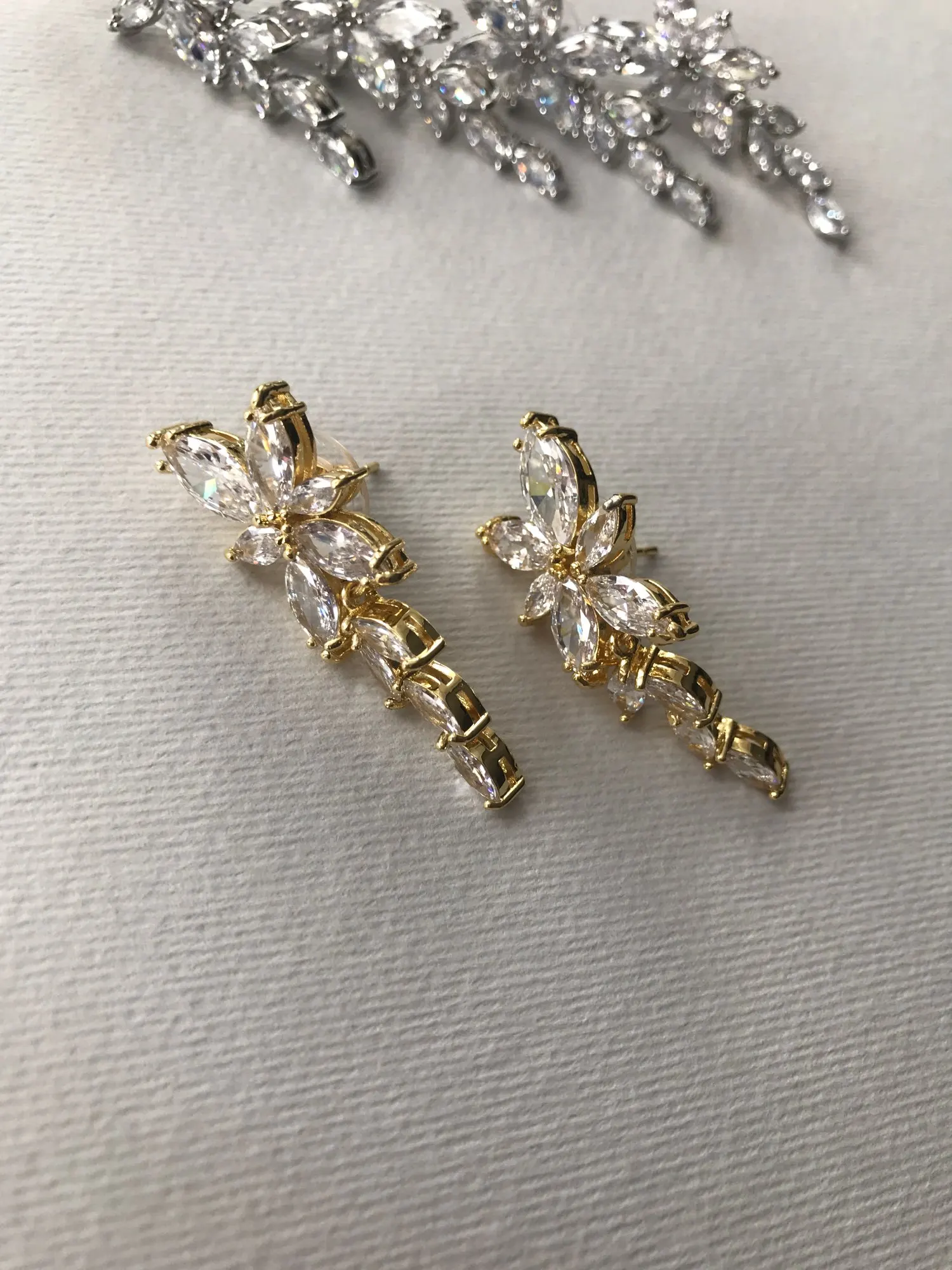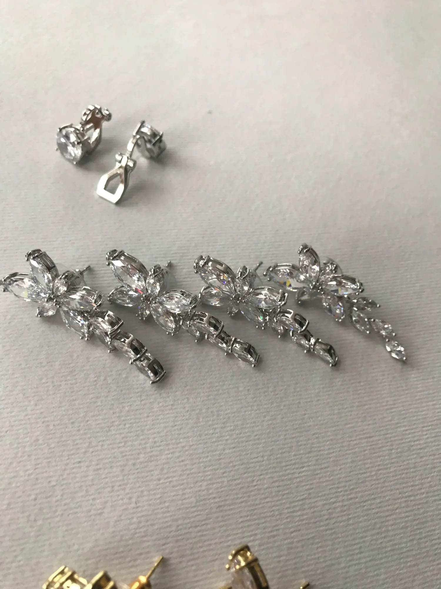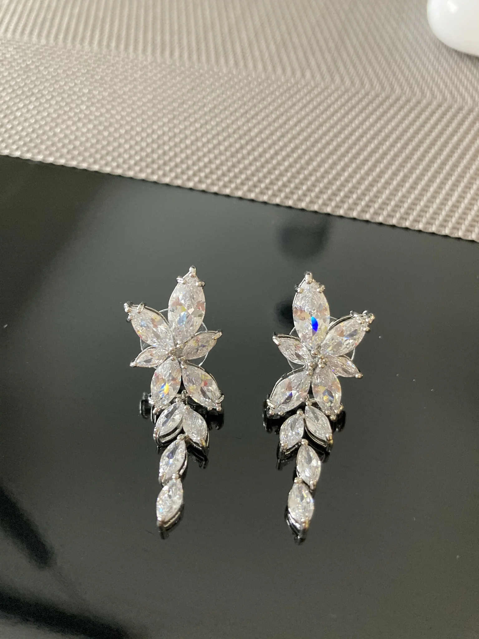 Модные серьги-подвески с листом циркония для женщин, белое золото, цвет маркиза, кристалл, свадебные серьги, свадебные украшения, подарок