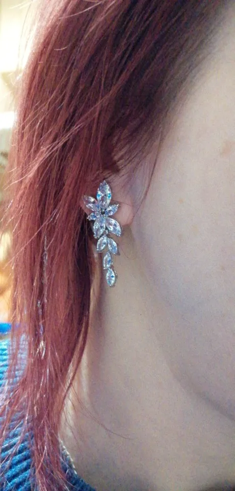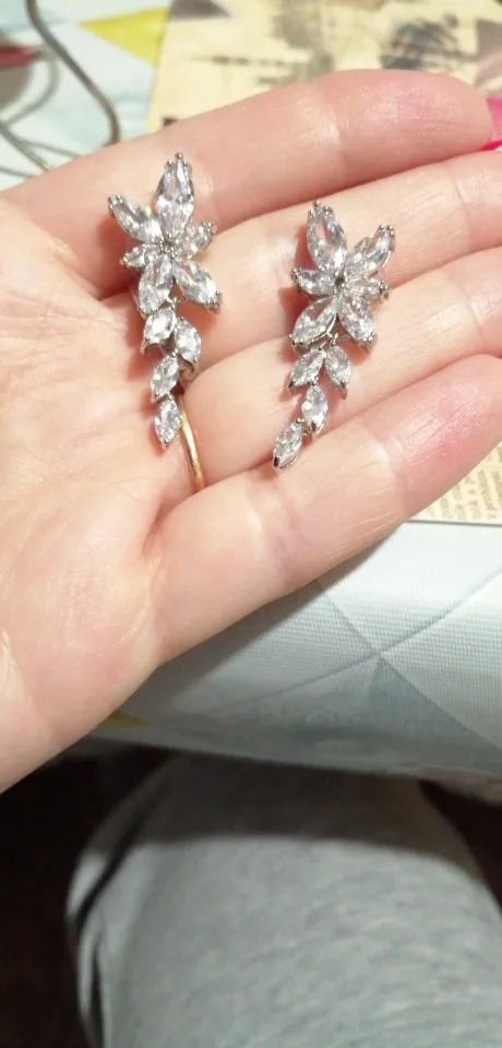Серьги очень красивые, все как на фото у продавца! Аккуратные, хорошо блестят! Доставка быстрая до Казани, ничего не поломано)