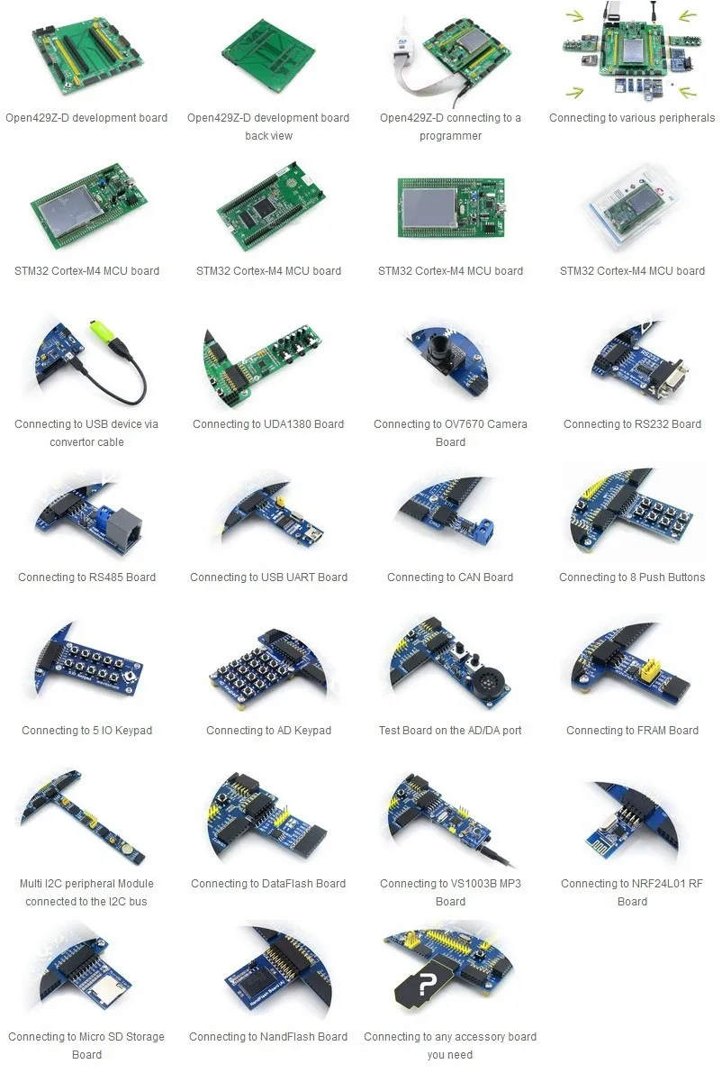 Open429Z-D поддерживает дальнейшее расширение с помощью различных дополнительных аксессуаров для конкретных приложений. Модульная и открытая конструкция делает ее идеальной для начала разработки приложений с Микроконтроллерами серии STM32.
