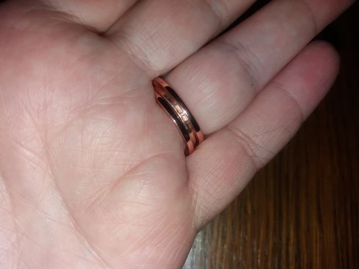 Выглядит очень достойно! Заказываю во второй раз. Правда с размерами не понятка, взяла на 17 оказалось большим, носила на среднем пальце, впритык, но зимой не критично. Сейчас уже взяла на 18 размер, получше, если с кольцом мыть посуду, мыться и.т.д. то быстро облезет. Первое выбросила после 10 дней беспрерывной носки.