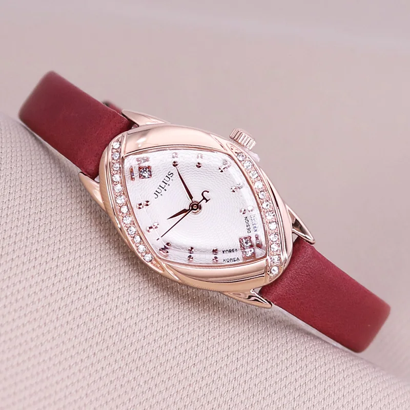 Julius Lady Women's Watch Japan Quartz Hours Fine Fashion Clock Bracelet Leather CZ Rhinestone Girl's Birthday Gift Box 660