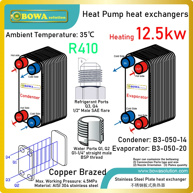 11000 ккал теплопередача между хладагентом и водой PHE используется в воде л. С. Тепловой насос R410 водонагреватели или охладители