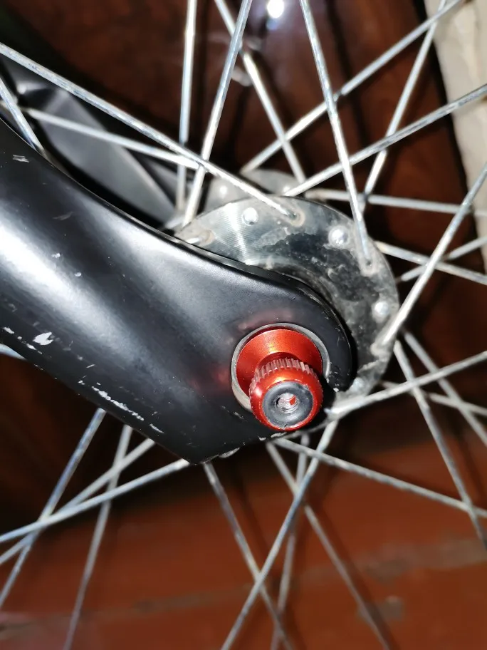 Взял взамен старых эксцентриков, ушла болтанка, колесо стало жёстче, держится отлично. На болте свой фирменный пятигранный шлиц - своего рода секретка. Ключ идет в комплекте, его лучше не терять. У ключа есть резьба под автонипель, но накручивать ключ на колесо не стоит - нарушается балансировка.