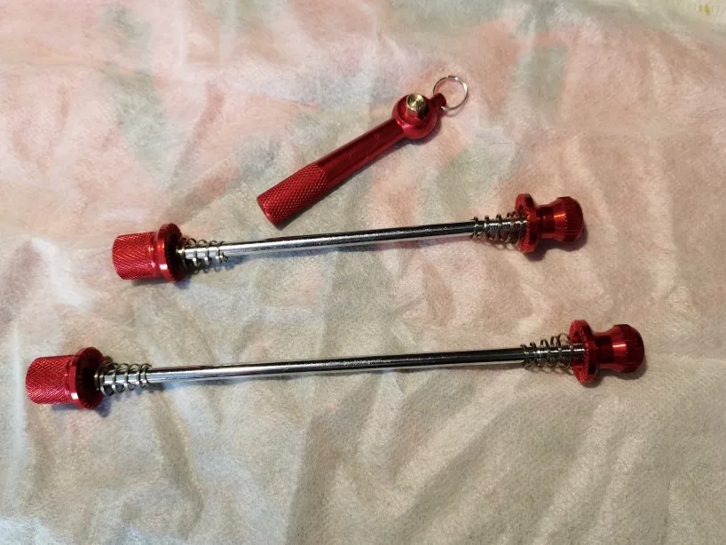 Отличная замена обычным эксцентрикам. Использую черные уже несколько лет на 26 колесах для кросскантри и доя памп-трека. Держит крепче, чем обычный зажимной эксцентрик. Вес 74грамма. Не ржавеет. Рекомендую!