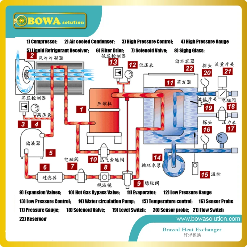 Пластинчатый теплообменник 7,6 + 50% кв. м с двойным циклом хладагента используется в водных охладителях 30 + 30TR, R407c для разгрузки при необходимости