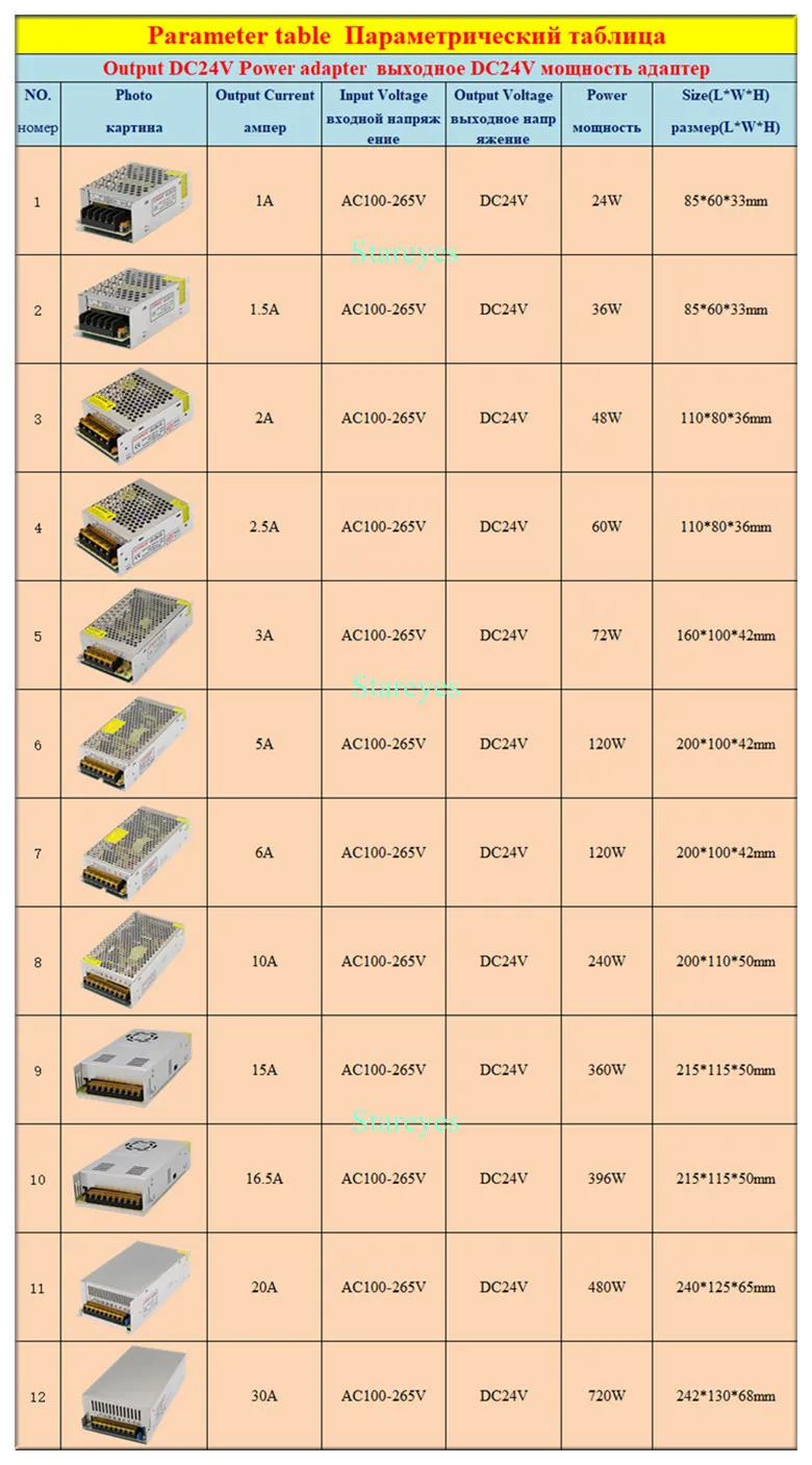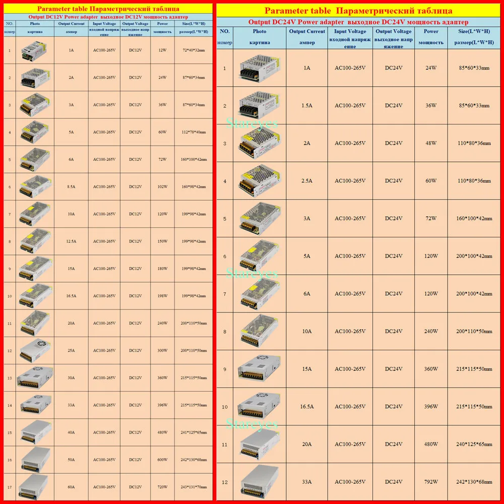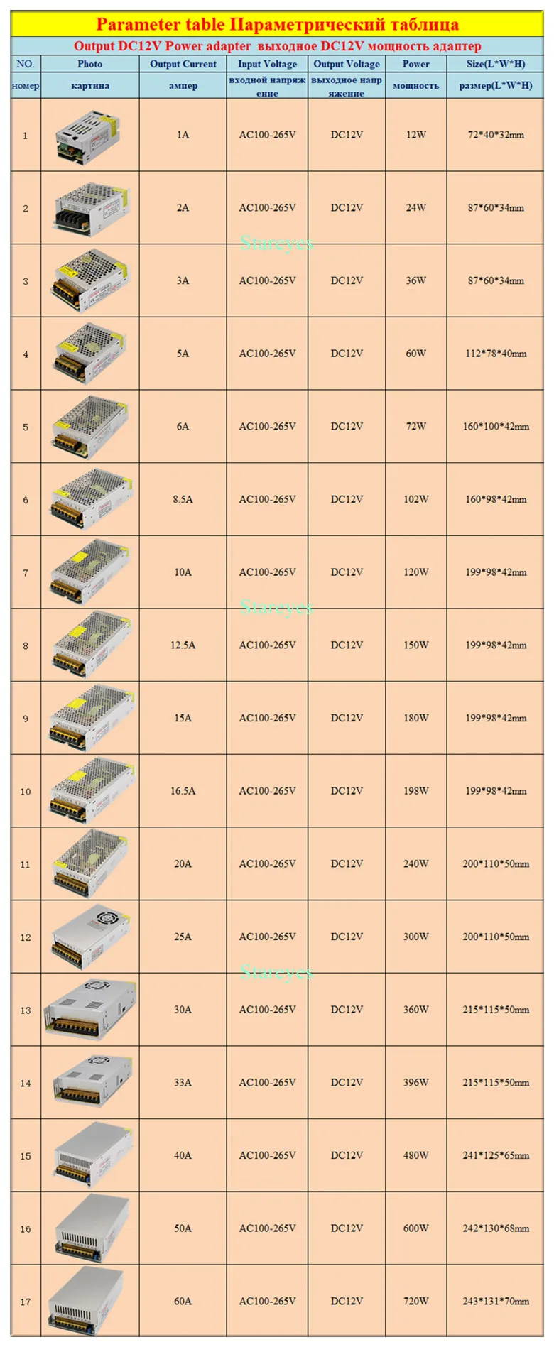 DC12V 1A / 2A / 3A / 5A / 6A / 8.5A / 10A / 12.5A / 15A / 16.5A / 20A / 25A / 30A / 33A / 40A / 50A(1 вентилятор) / 60A адаптер питания переключателя