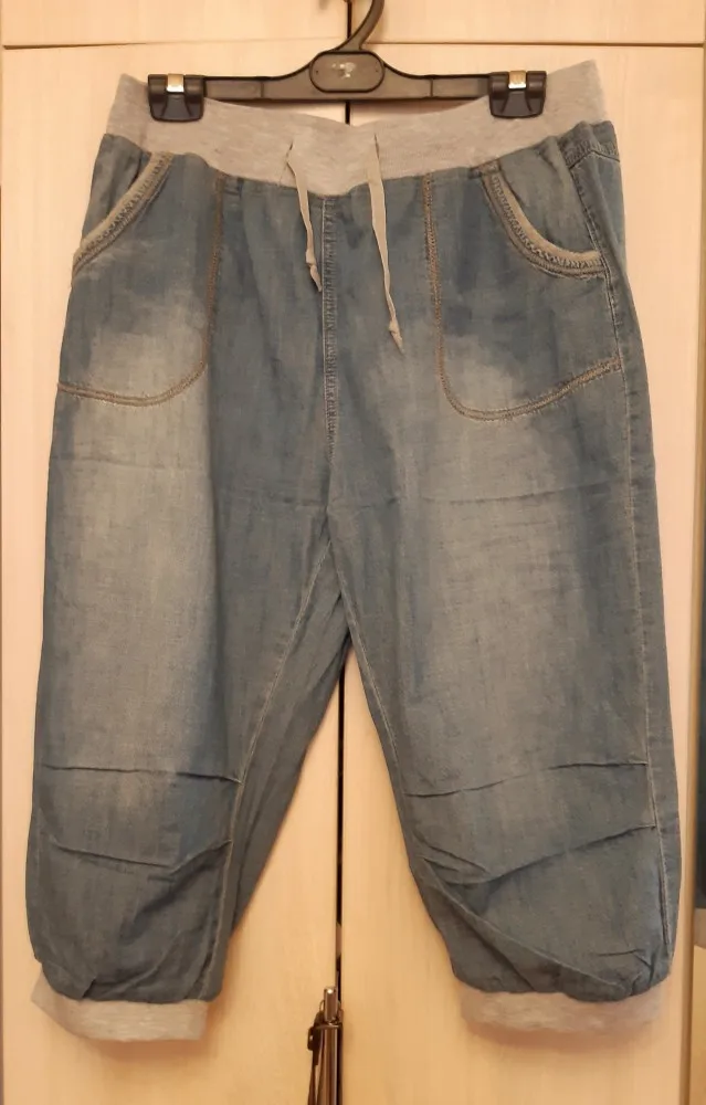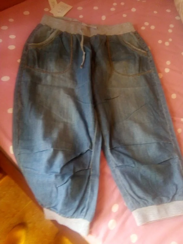 Бриджи пришли за 12 дней до центра России. Сшиты нормально, ткань чуть - чуть плотнее рубашечной, цвет под джинсу, на лето самое то, что нужно. 4XL нормально подошёл на 92-116,не в обтяг. Довольна. Вот как-то так...