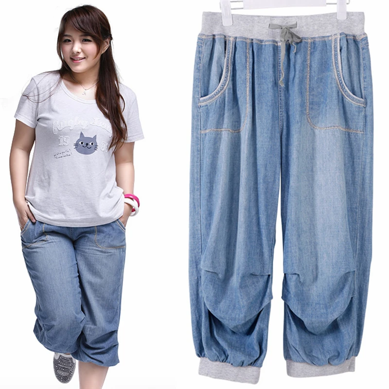 2018 г. летние женские джинсы штаны-шаровары Большие размеры свободные брюки для женщин джинсы капри 6XL