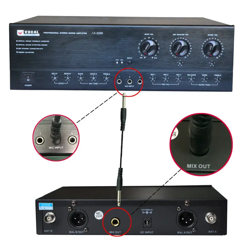 3) 6,35 разъем кабельного усилителя (есть один кабель в посылка)