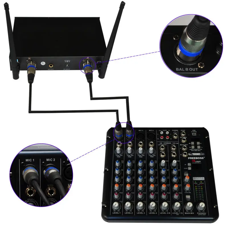 2) кабель XLR к аудиомиксеру (не входит в посылка)