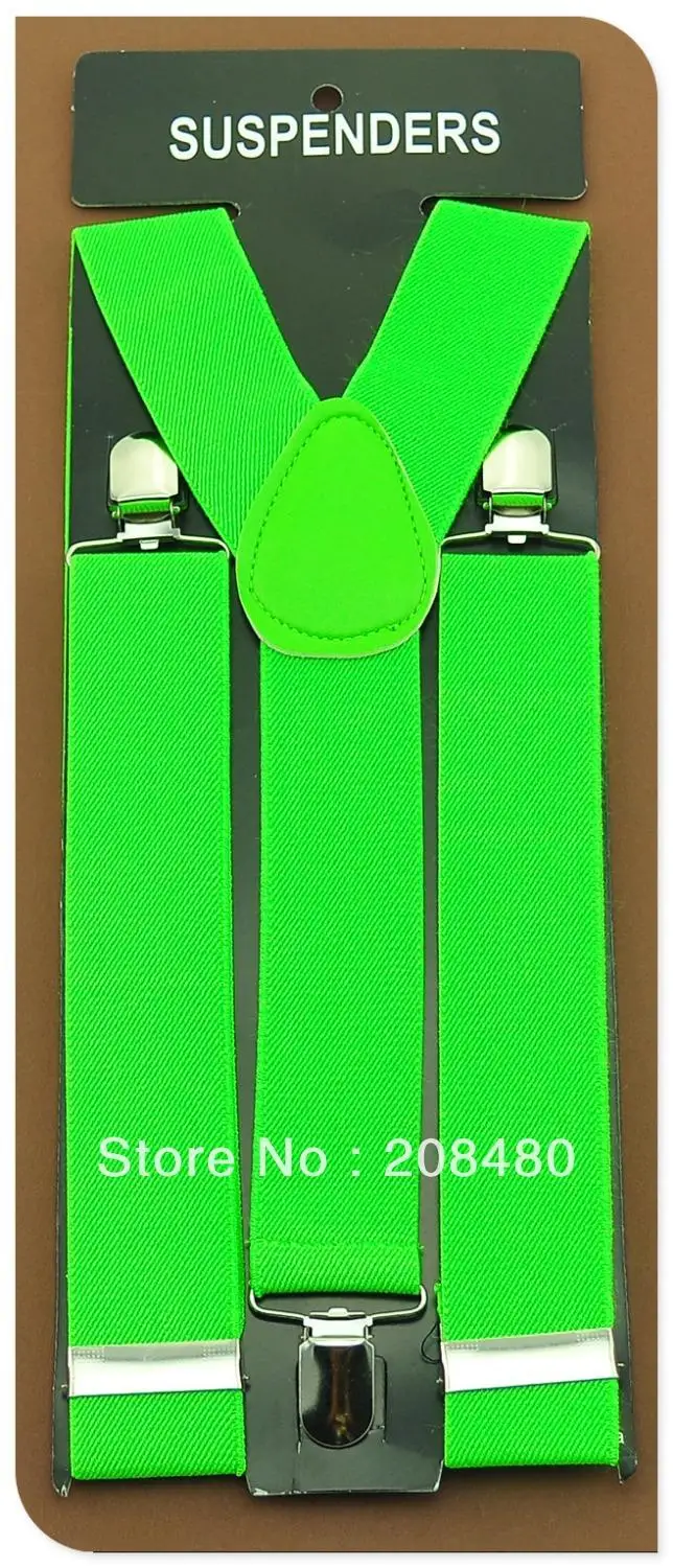 Бесплатная доставка-мужские Эластичные подтяжки унисекс с застежкой-клипсой шириной 3,5 см, подтяжки ярко-зеленого цвета, оптовая цена
