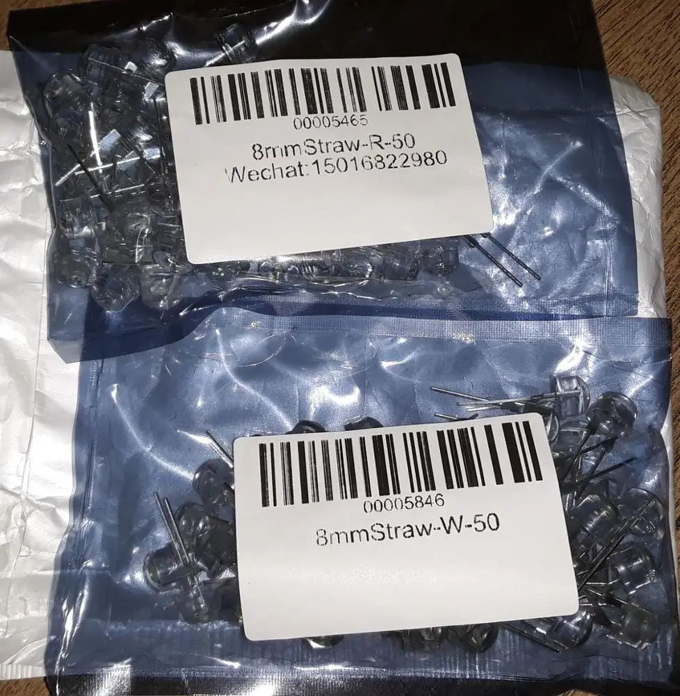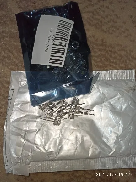 Доставка до МО 34 дня. Все 50 диодов рабочие, но качество не очень, у какх частично мутный пластик, смещён центр, пузырьки прямо на кристалле. Продажа брака со скидкой!