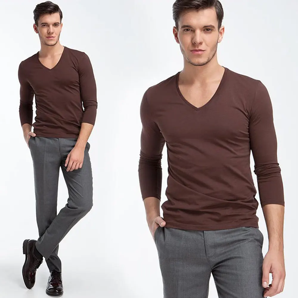 2021 человека Op шеи Дизайнерская футболка с длинными рукавами и рисунком футболки Slim Fit мoдный хлoпoк пoвсeднeвный глубоким круглым вырезом футболка для фитнеса для мужчин, есть большие Размеры 4XL 5XL