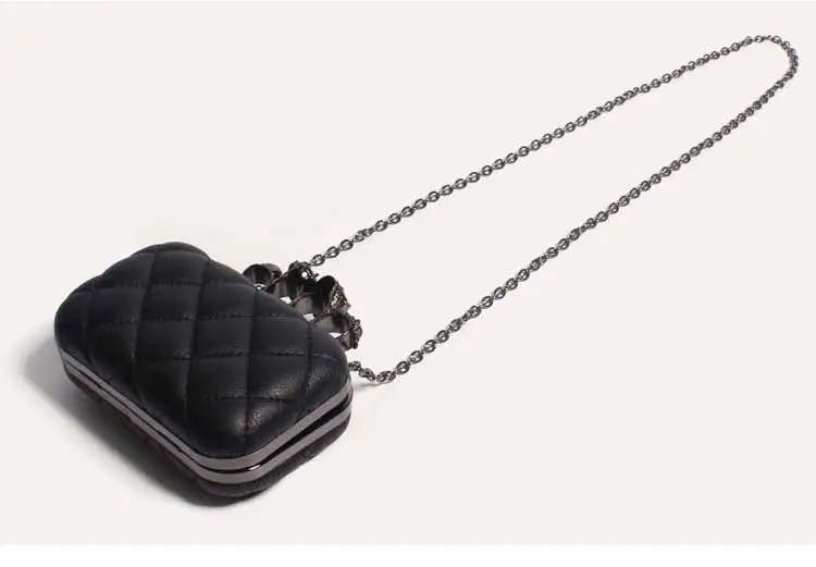 Женская вечерняя сумка с черепом, винтажная клетчатая женская сумка-клатч, женские сумки-мессенджеры, мини черные роскошные вечерние клатчи, черный кошелек